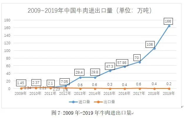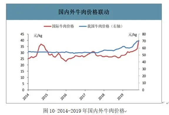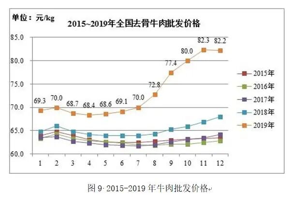 2019年(nián)4月(yuè),中國(guó)與老(lǎo)撾簽署了(le)《關于中國(guó)從(cóng)老(lǎo)撾輸入屠宰用(yòng)肉牛的(de)檢疫和(hé)衛生(shēng)要(yào)求議(yì)定書(shū)》,并增加了(l→e)14個(gè)牛肉進口準入國(guó),彼時(shí)共有(yǒu)28個(gè)國(guó)家(jiā)(•巴西(xī)、烏拉圭、澳大(dà)利亞、新西(xī)蘭、阿根廷、加拿(ná)大(dà)、智利、哥(gē)斯達黎加、美(měi)國(guó)、南(nán)非、♦烏克蘭、墨西(xī)哥(gē)、匈牙利、蒙古、哈薩克斯坦、白(bái)俄羅斯、玻利維亞、納米比亞、塞爾維亞、愛(ài)爾蘭、荷蘭、烏克蘭、巴拿(ná)馬、俄羅斯、法國(guó)、日(αrì)本、丹麥、英國(guó)牛肉)的(de)牛肉獲得(de)中國(guó)市(shì)場(chǎng)的(de)準入證。2020年(nián) 1月(yuè),中國(guó)與緬甸簽署了(le)《關于緬甸向中國(guó)出口屠宰用(yòng)肉牛檢疫與衛生(shēng)要(yào)求議(∑yì)定書(shū)》,進一(yī)步規範東(dōng)南(nán)亞邊境活牛交易市(shì)場(chǎng),推動東(dōng)南(nán)亞牛源入境合法化(huà)進程。2月(yβuè),海(hǎi)關總署與農(nóng)業(yè)農(nóng)村(cūn)部聯合發布《關于解除進口美(měi)國(guó)牛肉及牛肉産品月(yuè)齡限制★(zhì)的(de)公告》,解除了(le)對(duì)美(měi)國(guó)30月(yuè)齡及以上(shàng)牛肉及牛肉産品的(de)禁令,允許符'合中國(guó)相(xiàng)關法律法規和(hé)檢驗檢疫要(yào)求的(de)相(xiàng)關産品對(duì)華出口。 在國(guó)際政治、經濟及國(guó)內(nèi)市(shì)場(chǎng)調節等因素的(de)共同作(zuò)用(yòng)下(xià),正關進口政策不(bù)斷放(fàng)寬,牛↓肉産品正關入境比重持續擴大(dà),正關進口數(shù)量逐年(nián)增多(duō)。但(dàn)基于現(xiàn)階段我國(guó)牛肉産∏能(néng)不(bù)足及國(guó)際相(xiàng)關産品流通(tōng)總量相(xiàng)對(duì)飽和(hé)的(de)客觀事(shì)實,進口産品依然以補充缺口為(wèi)主要★(yào)功能(néng),而非法走私與正關進口之間(jiān)此消彼長(cháng)的(de)微(wēi)妙轉化(huà),可(kě)将入境成本的(de)總體(tǐ)優勢削弱,進口産品低(dī) 價沖擊本國(guó)市(shì)場(chǎng)的(de)能(néng)力有(yǒu)限。因此,在今後一(yī)段時(shí↕)期,進口增長(cháng)給國(guó)內(nèi)産業(yè)發展帶來(lái)嚴重威脅的(de)可(♥kě)能(néng)性不(bù)大(dà)。 牛肉價格與肉牛存欄量密切相(xiàng)關,存欄量提高(gāo),牛肉價格降低(dī),相(xiàng)反,則牛肉價格上(shàng)漲。2017年(ni☆án)起我國(guó)肉牛存欄量大(dà)幅下(xià)降,牛肉價格持續上(shàng)漲。2019年(n÷ián),我國(guó)牛肉平均價格達73.2元/kg,同比增長(cháng)12.26%(具體(tǐ)如(r§ú)圖9所示)。農(nóng)業(yè)農(nóng)村(cūn)部預測,未來(lái)十年(nián)牛肉價格處将保持上(shàng)漲。