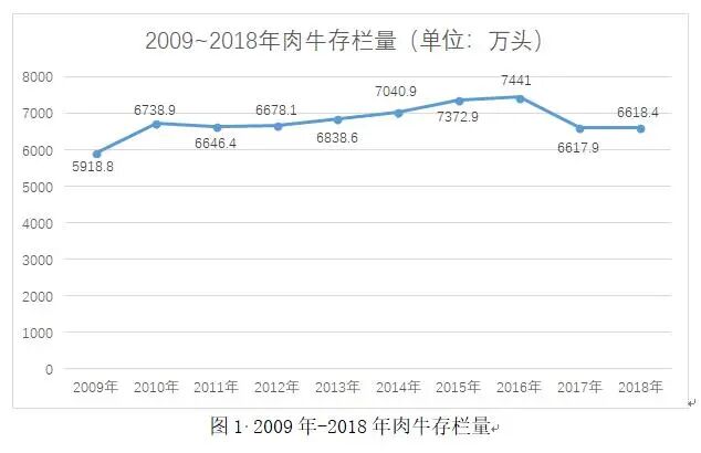 此外(wài),受疫情影(yǐng)響,國(guó)際貿易額大(dà)幅度下(xià)滑。一(yī)季度,'我國(guó)貿易進出口總值6.57萬億元人(rén)民(mín)币,比去(qù)年(nián)同期下(xià)降6.4%。其中,出口3.33萬億元,下(xià)降11¶.4%;進口3.24萬億元,下(xià)降0.7%;貿易順差983.3億元,減少(shǎo)80.6%。 鑒于我國(guó)牛肉進口依賴度高(gāo)的(de)特點,國(guó)際貿易低(dī)迷将對(duì)我國(guó)牛肉市(shì)場(chǎng)産生(shēng)一(yī∏)定影(yǐng)響。 随著(zhe)城(chéng)鄉(xiāng)居民(mín)收入水(shuǐ)平的(de)不(bù)斷提高(gāo),食品文(wén)化(huà)和(hé)飲食結構逐漸改善,人(rén✘)們開(kāi)始意識到(dào)家(jiā)庭飲食健康的(de)關鍵所在,僅僅是(shì)豬肉産品不(bù)再能(néng)滿Ω足廣大(dà)社會(huì)消費(fèi)者的(de)需要(yào)。牛肉低(dī)脂肪高(gāo)蛋白(bái♦),富含亞油酸,鎂,鐵(tiě),鋅等礦物(wù)質,含有(yǒu)肉堿,維生(shēng)素等物(wù)質,對(duì)人(rén)體(tǐ)健康非常有(yǒu)利,營養專家(jiā)也(yě)主張多(duō)吃(chī)♥牛肉,吃(chī)豬肉和(hé)牛肉是(shì)大(dà)多(duō)數(shù)城(chéng)鄉(xiāng)居民(mín)的(de)理(lǐ)想食物(∞wù)。牛肉含有(yǒu)豐富的(de)蛋白(bái)質,脂肪含量低(dī),味道(dào)鮮美(měi),享有(yǒu)“肉中驕子(zǐ)”的(de)美(měi)稱。在日(rì)常餐桌上(s♣hàng),我們能(néng)夠經常看(kàn)見(jiàn)牛肉的(de)身(shēn)影(yǐng)。 我國(guó)肉牛産業(yè)分(fēn)為(wèi)5個(gè)階段,即役牛階段、萌芽階段、初級探索階段、穩健發展階段、成熟發展階段。近(jìn)年(nián)來(lσái),我國(guó)肉牛行(xíng)業(yè)标準及體(tǐ)系等逐步建立,打造了(le)西(xī)北(běi)肉牛區(qū)、東(dōnδg)北(běi)肉牛區(qū)、中原肉牛區(qū)和(hé)西(xī)南(nán)肉牛區(qū)等四大(dà)産區(qū),肉牛發展數(shù)量和(hé)經濟效益α逐年(nián)增加,肉牛存欄量、牛肉産量及消費(fèi)量均達到(dào)全球第三,但(dàn)人(rén)均消費(fèi)量仍處于較低(dī)水(sh₽uǐ)平,規模化(huà)水(shuǐ)平低(dī),且養殖、分(fēn)割等相(xiàng)關标準體(tǐ)系不☆(bù)夠完善,所以目前我國(guó)肉牛産業(yè)仍處于初級探索階段。 2019年(nián),我國(guó)肉牛産業(yè)呈現(xiàn)産量保持穩定、消費(fèi)量及進口量明(míng)顯增加,貿易逆>差擴大(dà),價格處于高(gāo)位且漲幅明(míng)顯擴大(dà)等三大(dà)特點。2020年(nián),受新冠肺炎疫情影(yǐng)響,一(yī)季度牛肉産量有(yǒu)所下(xià)降,但(dà>n)随著(zhe)疫情的(de)緩解,産能(néng)及消費(fèi)逐步釋放(fàng),預計(jì)全年(nián)牛肉産量、消費(fφèi)量及進口量均會(huì)有(yǒu)一(yī)個(gè)小(xiǎo)幅增加。 肉牛存欄量 近(jìn)年(nián)來(lái),我國(guó)肉牛存欄量增速放(fàng)緩,且2017年(nián)出現(xiàn)下(xià)降。2018年(→nián),我國(guó)肉牛存欄6618.4萬頭,較2017年(nián)僅增加0.5萬頭(具體(tǐ)如(rú)圖1所示)。