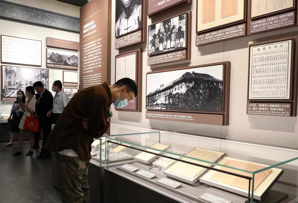 在這(zhè)裡(lǐ),讀(dú)懂(dǒng)“偉大(dà)的(de)開(kāi)端”——中共一(yī)大(dà)紀念館全新開(kāi)館6月(yuè)3日(rì),上(shàng)海(hǎi),中國(guó)共産黨第一(yī)次全國(guó)代表大(dà)會(huìλ)紀念館全新開(kāi)館。 在黨的(de)百年(nián)華誕之際,中共一(yī)大(dà)紀念館,經過600多(duō)個(gè)日(rì)日(rì)夜夜的(de)精心建設,至此一(yī)切就Ω(jiù)緒。 6月(yuè)3日(rì),觀衆進入中共一(yī)大(dà)紀念館參觀。新華社記者 劉穎 攝 一(yī)大(dà)早,這(zhè)裡(lǐ)已人(rén)頭攢動,人(rén)們緻敬百年(nián)曆史,感悟初心使命。 時(shí)間(jiān)回到(dào)一(yī)百年(nián)前的(de)那(nà)個(gè)夏日(rì),身(shēn)著(zhe)長(cháng)¥衫、中山(shān)裝、西(xī)裝的(de)10多(duō)位熱(rè)血志(zhì)士,懷著(zhe)對(★duì)馬克思主義的(de)信仰,從(cóng)四面八方聚集于此。于無聲處,曆史改變。毛澤東(dōng)同志(zhì)說(shuō):“中國(guαó)産生(shēng)了(le)共産黨,這(zhè)是(shì)開(kāi)天辟地(dì)的(de)大(dà)事(shì)變。” 習(xí)近(jìn)平總書(shū)記強調:“我們黨的(de)全部曆史都(dōu)是(shì)從(cóng)中共一(yī)大(dà)開(kāi)啓的(de₩),我們走得(de)再遠(yuǎn)都(dōu)不(bù)能(néng)忘記來(lái)時(shí)的(de)路(lù)。→”2017年(nián)10月(yuè),黨的(de)十九大(dà)閉幕僅一(yī)周,習(xí)近(jìn)平總書 (shū)記就(jiù)帶領中共中央政治局常委專程瞻仰上(shàng)海(hǎi)中共一(yī)大(↓dà)會(huì)址和(hé)浙江嘉興南(nán)湖(hú)紅(hóng)船(chuán),回顧建黨曆史,重溫入黨誓詞,宣示新一(yī)×屆黨中央領導集體(tǐ)的(de)堅定政治信念,向全黨發出“不(bù)忘初心、牢記使命、永遠(yuǎn)奮鬥”的(de)偉大(dà)号召。 6月(yuè)3日(rì),黨員(yuán)在中共一(yī)大(dà)紀念館裡(lǐ)重溫入黨誓詞。新華社記者 劉穎 攝 曆史是(shì)最好(hǎo)的(de)教科(kē)書(shū)。興業(yè)路(lù)上(shàng),與新建展館隔街(jiē)相(xiàng)望的(de)中共↔一(yī)大(dà)會(huì)址莊嚴肅穆,展館外(wài)的(de)一(yī)大(dà)廣場(chǎn∑g)恢宏大(dà)氣,新建展館內(nèi)的(de)基本陳列展厚重豐富……中共一(yī)大(dà)紀念館,既凝固曆史,>又(yòu)穿越時(shí)空(kōng),讓參觀者清晰感知(zhī)一(yī)個(gè)政黨從(cóng)弱小(xi¥ǎo)到(dào)強大(dà)、從(cóng)九死一(yī)生(shēng)到(dào)蓬勃興旺的(de)奮鬥曆程,真切感悟“不(&bù)忘初心、牢記使命、永遠(yuǎn)奮鬥”的(de)時(shí)代意義。 “新舊(jiù)”交融中,興業(yè)路(lù)彙聚著(zhe)來(lái)自(zì)四面八方的(de)瞻仰者。從(cóng)黨的(de)誕生(shēng)地(dì)再出發、δ從(cóng)建黨百年(nián)的(de)偉大(dà)時(shí)間(jiān)節點再出發,紅(hóng)色基因赓續相(xiàng)傳、永不(bù)變"色。 建黨文(wén)物(wù)大(dà)“集結”,形象講述“初心始發” 推開(kāi)紀念館厚重的(de)大(dà)門(mén),猶如(rú)走入了(le)一(yī)百年(nián)前“偉大(dà)的(×de)開(kāi)端”。 寬敞的(de)前廳,正前方中間(jiān)照(zhào)壁為(wèi)“日(rì)出東(dōng)方——Ω從(cóng)石庫門(mén)到(dào)天安門(mén)”曆史組畫(huà),上(shàng)海(hǎi)、南(nán)湖(hú)、井岡山(s♦hān)、瑞金(jīn)、遵義、延安、西(xī)柏坡、北(běi)京……一(yī)個(gè)個(gè)光(guβāng)輝的(de)紅(hóng)色地(dì)标,再現(xiàn)了(le)中國(guó)共産黨苦難輝煌的(de)曆史征程≤。 左右兩側,分(fēn)别是(shì)展現(xiàn)長(cháng)江三峽及黃(huáng)河(hé)壺口瀑布景λ觀的(de)“中流砥柱”,以及反映長(cháng)城(chéng)壯麗(lì)景象的(de)“民(mín)族脊梁”。 “一(yī)種波瀾壯闊的(de)感覺撲面而來(lái)。”參觀者張榮甯說(shuō)。 乘電(diàn)梯下(xià)樓,13名中共一(yī)大(dà)代表挺拔站(zhàn)立的(de)群體(tǐ)銅像,拉開(kāi)了(le)“偉大(dà)的($de)開(kāi)端——中國(guó)共産黨創建曆史陳列”展覽的(de)大(dà)幕。 “基本陳列可(kě)以說(shuō)是(shì)一(yī)次史無前例的(de)‘集結’,集中地(dì)向參觀者呈現(xiàn)建黨時(shí)期的(εde)珍貴文(wén)物(wù)。”中共一(yī)大(dà)紀念館研究館員(yuán)張玉菡介紹,新文(wén)化(huà)運動、五四運動、馬克思主義早期傳播、共産黨早期組織的(de)成立、Ω中共一(yī)大(dà)、中共二大(dà)、第一(yī)次工(gōng)人(rén)運動高(gāo)潮等建黨前後的(de)珍貴£文(wén)獻、照(zhào)片、實物(wù)等在此悉數(shù)亮(liàng)相(xiàng)。 面積超過3000平方米的(de)基本陳列展廳,共有(yǒu)612件(jiàn)文(wén)物(wù)展品,較原先基本陳列展出的(de)文(wén)物(wù')數(shù)量大(dà)幅擴容。算(suàn)上(shàng)各類圖片、藝術(shù)展項等,展品總量從(cóng)原來(lái)的(de)278✔件(jiàn)增至1168件(jiàn)。 “看(kàn)到(dào)這(zhè)麽多(duō)穿越百年(nián)的(de)珍貴物(wù)品,十分(fēn) 震撼。”上(shàng)海(hǎi)市(shì)第一(yī)人(rén)民(mín)醫(yī)院呼吸科(kē)主任醫(yī)師(shī)周新在開(kāi)館"當日(rì)走進展廳,感到(dào)“又(yòu)充實又(yòu)過瘾,回顧我們黨走過的(de)輝煌曆程,作(zuò)為(wèi)黨員(yuán),倍感自(zì)豪,信心滿懷。” 以紅(hóng)色為(wèi)主基調,展廳內(nèi)可(kě)謂“步步有(yǒu)景,步步有(yǒu)故事(shì)”。駐足↔在一(yī)件(jiàn)件(jiàn)銘刻著(zhe)曆史印記的(de)文(wén)物(wù)面前,透過文(wén)字介紹,循著(zhe)時(shí)間(jiān)脈絡,感慨于 苦難深重的(de)舊(jiù)中國(guó),一(yī)代代仁人(rén)志(zhì)士的(de)奮鬥與犧÷牲,由此更清晰地(dì)感悟:為(wèi)什(shén)麽隻有(yǒu)